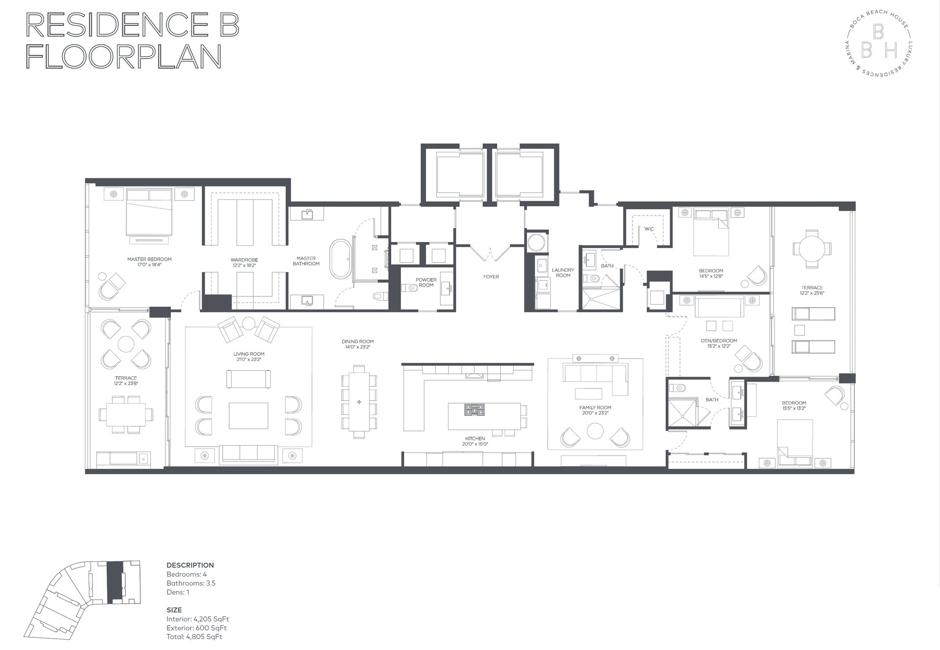 Penthouse 2 at Boca Beach Residences is a rare, fully furnished waterfront offering with sweeping views of Lake Boca and the Atlantic Ocean from every guest suite. This 4-bedroom + den, 3.5-bath residence features a spacious flow-through layout with over 600 square feet of private outdoor space--including two terraces, one with a summer kitchen overlooking the Intracoastal. A private boat slip is included, offering direct access to South Florida's premier waterways. Every detail of this designer-finished residence reflects the essence of elevated coastal living. Wide-plank white oak flooring, floor-to-ceiling glass, custom motorized blinds, outfitted closets, and curated wall coverings create a sophisticated and harmonious interior. The chef's kitchen is appointed with Italian smoked-glass cabinetry and top-of-the-line Gaggenau appliances, including a gas cooktop, wine cooler, and paneled refrigerator/freezer. The primary suite is a true sanctuary, featuring a custom Poliform wardrobe and a spa-inspired bath with dual waterfall vanities and LED-lit mirrors. Each guest suite opens to a private terrace, offering both comfort and seclusion. Located on 3.2 acres of prime lakefront, Boca Beach Residences is an exclusive enclave of just 32 homes directly across from the Boca Raton Resort & Club. Residents enjoy semi-private elevator access, smart-home technology, and boutique amenities including a private marina, lakefront pool and spa, yoga lawn, lakefront boardwalk, Aqua Room for water sports storage, five-star concierge, valet, and private underground garages all surrounded by lush tropical landscaping by Raymond Jungles and architecture by Sieger Suarez. This is waterfront living redefined turnkey, refined, and effortless.